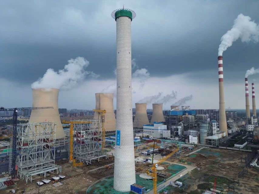 华能德州电厂高灵活性清洁高效2×660兆瓦热电联产项目烟囱混凝土外筒顺利到顶